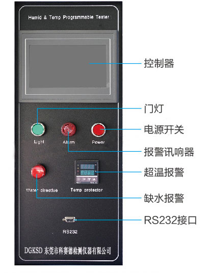 報警訊響器:當機臺運行出現異常時,自動發出報警聲指示;RS232接口:連接計算機;